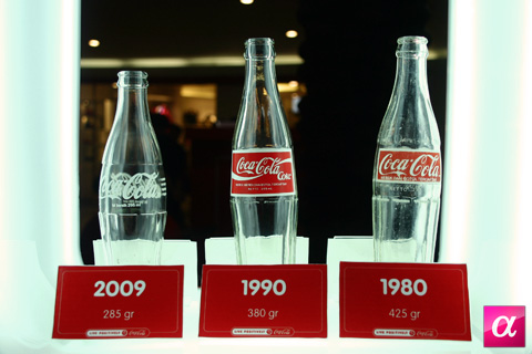 Coca-Cola juga tidak lupa untuk memajang evolusi botol dari tahun ke tahun.